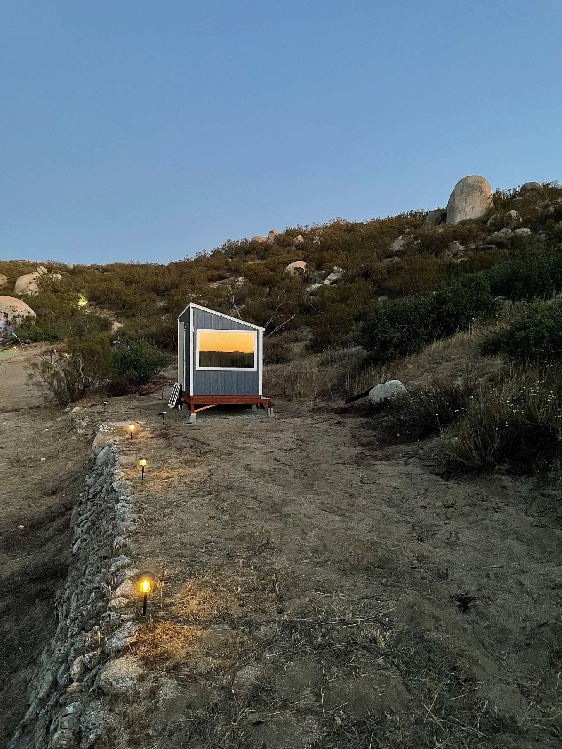 35 acres with majestic views of the Palomar mountains. This gives you access to explore and enjoy touring the farm with it's cute goats, donkeys and learn about nature and farming. Your tiny house will have a private area with grill and fire pit to enjoy while gazing at the stars.